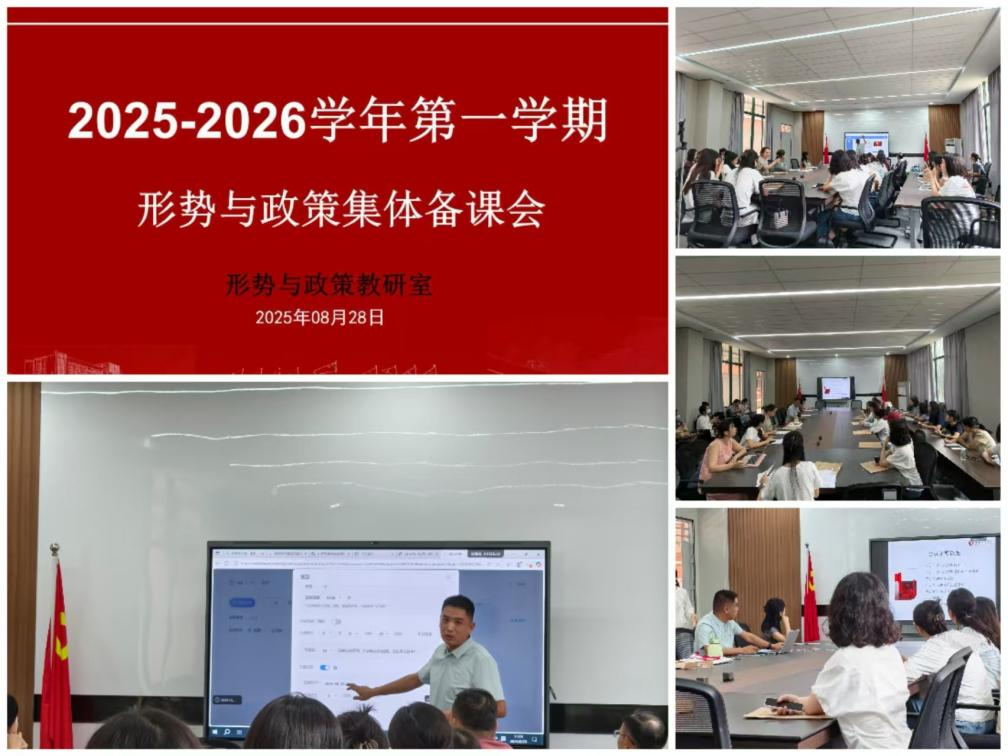 8月28 日上午10:30—11:30,形势与政策教研室通过线上线下相结合的方式在创新楼马院会议室召开了 2025—2026学年第一学期首次集体备课会。会议由教研室主任武梅老师主持,广州、肇庆两校区全体专兼职教师及学院督导线上参会。