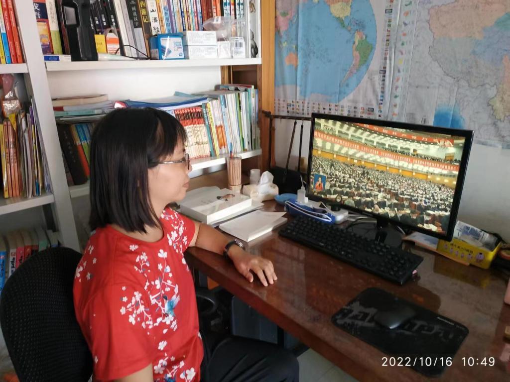 赖俊锋老师表示:二十大是我党进入建设中国特色社会主义现代化新征程关键时刻一次非常重要会议。我心情澎湃,充满了期待地观看了二十大开幕的电视直播。近五年来,在习近平总书记的领导下实现了经济的健康发展,政治的风清气正,社会的长期稳定。我为中国近五年取得的成就而自豪,为伟大、光荣、正确的中国共产党喝彩。