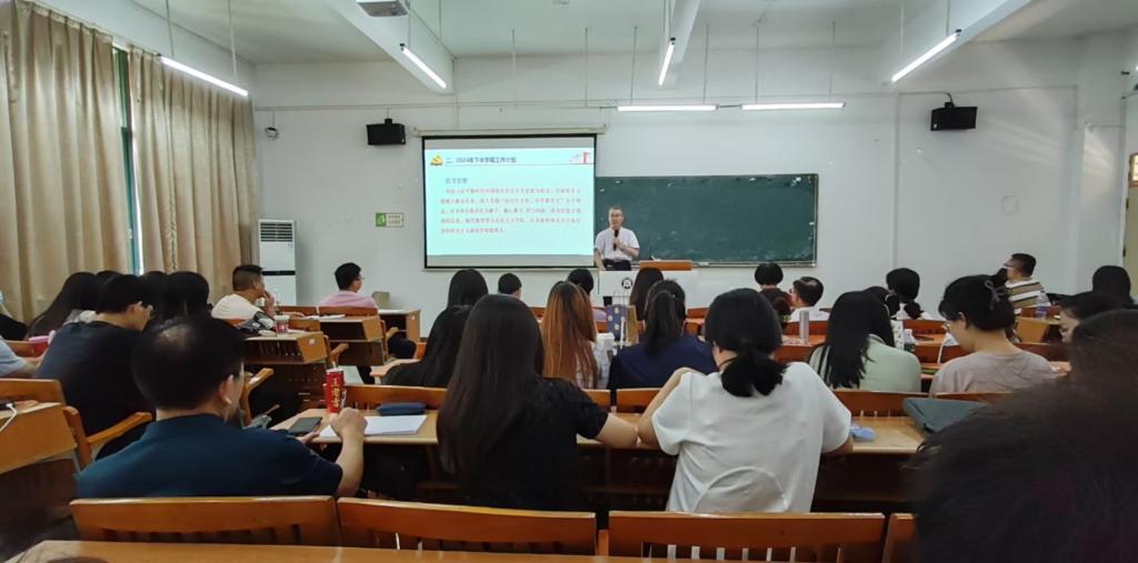 最后杨明院长对新学期整体工作作了报告。杨院长从指导思想、合格评估引领教学质量提升、科研提升、社会服务、服务保障等五个大方面进行了细致的讲解,并提出了具体可行的举措。杨院长要求与会教师要潜心学习党的二十届三中全会决议精神,不断提升现代教学能力;要求学院要做好师德建设,不断加强教学质量规范,要提升业绩绩效到人,不断提高科教产出效益。