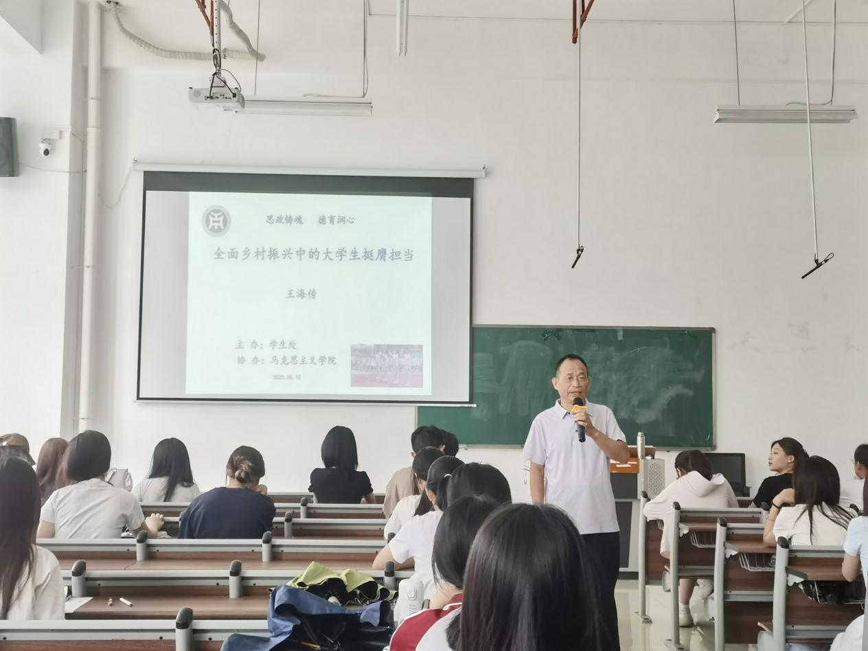 2025 年 6 月 10 日下午3点,由广州华商学院学生处主办、马克思主义学院协办的 “思政铸魂,德育润心系列讲座(第六讲):全面乡村振兴中的大学生挺膺担当”在肇庆校区 6号楼206教室顺利举办。马克思主义学院王海传教授担任此次讲座主讲人,300余名师生到场参加。