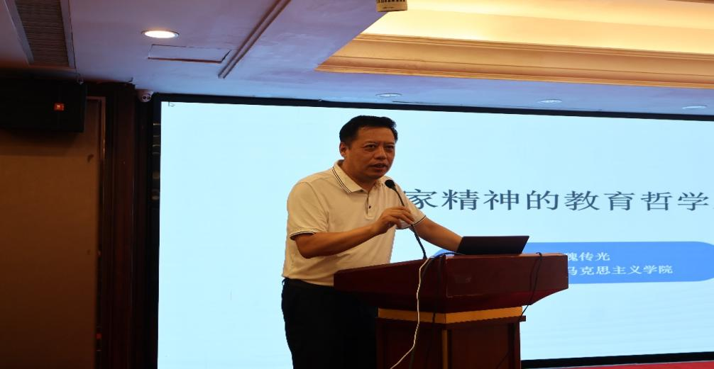 7月7日,南京师范大学马克思主义学科集群(学部)部长王永贵教授作了题为“善用看家本领讲好思政课的道理”的精彩报告。王教授强调思政课教师要重视并掌握“看家本领”,提升教学方式和方法,以解决好学术研究的“专”与教学内容的“广”、理论素养的“低”与课程要求的“高”、知识接受的“慢”与内容更新的“快”之间的矛盾。暨南大学马克思主义学院院长魏传光教授从“四有好老师”到“教育家精神”的脉络梳理出发,深入探讨了教育家精神的教育哲学内涵,并阐述了弘扬教育家精神的实践路径。