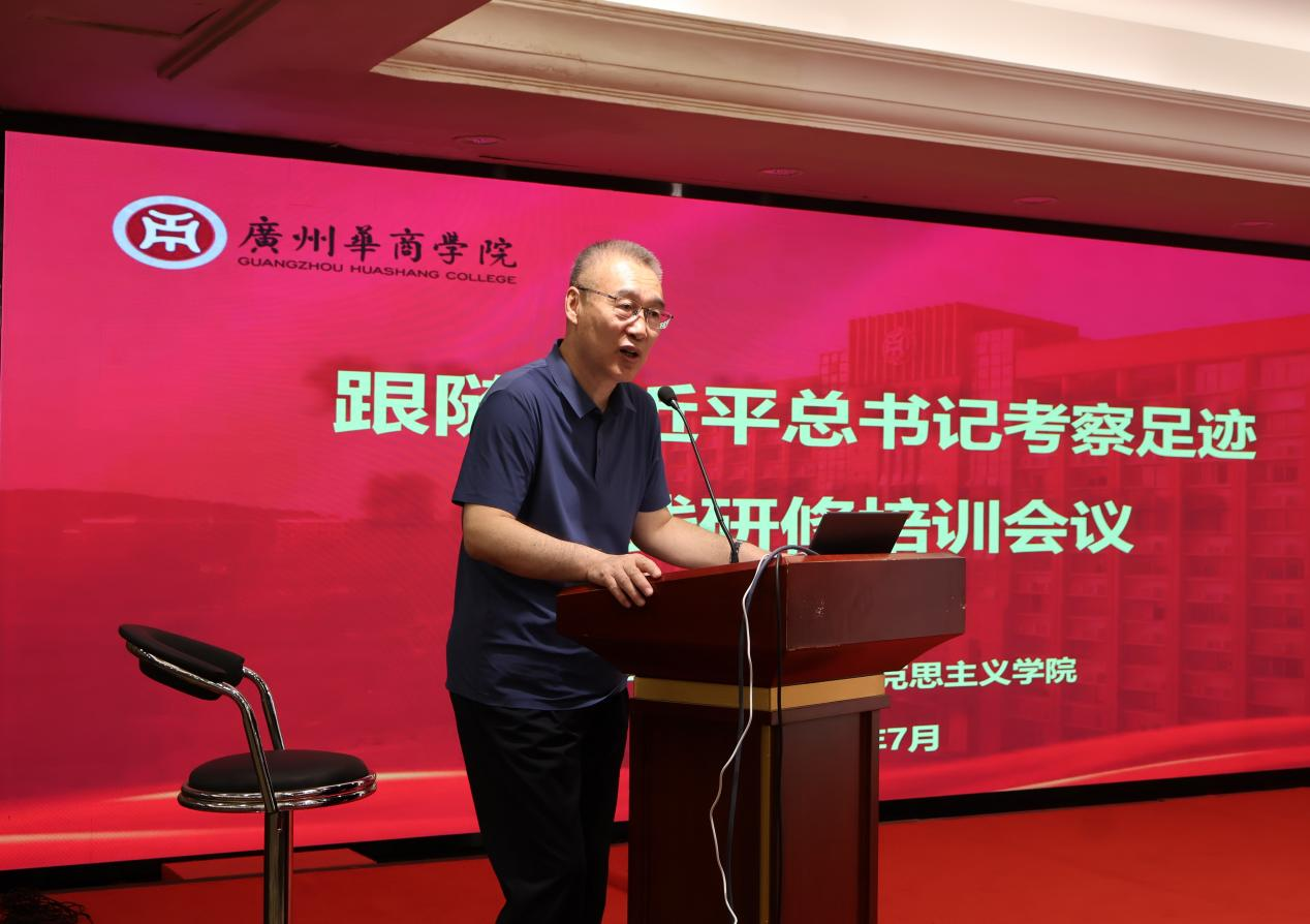 为全面学习贯彻习近平新时代中国特色社会主义思想,克服思政课教师队伍在马克思主义理论功底、历史文化素养、实践经验、教学方法、学情分析等方面的短板,2025年7月7日马克思主义学院于新塘太阳城酒店举办“跟随习近平总书记考察足迹”的实践研修培训会议开幕式。马克思主义学院院长杨明教授、党委书记胡立娟副教授、院长助理邹宁军副教授、各教研室主任以及专任教师共计90余人参加了本次活动。
