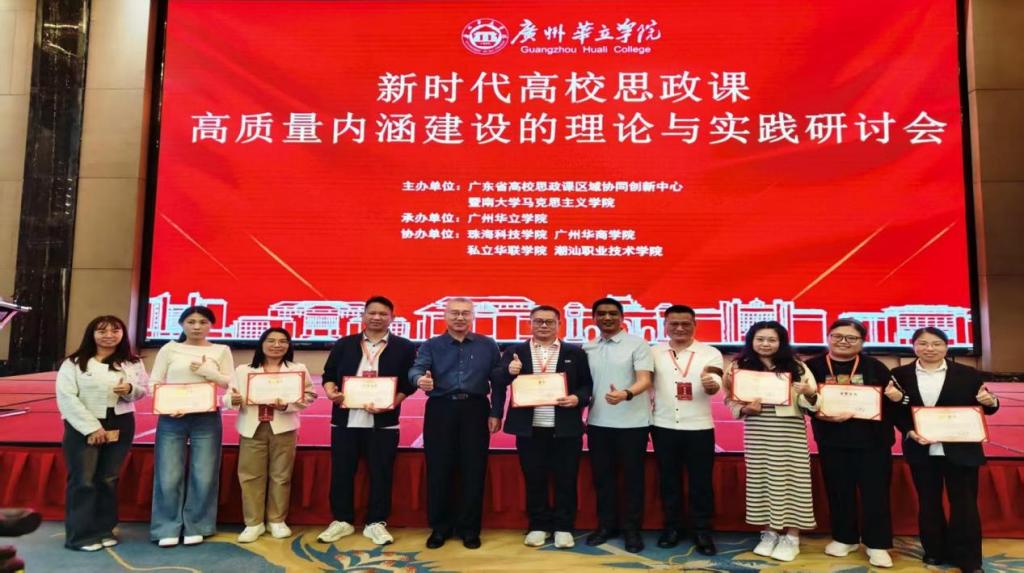 为深入贯彻落实习近平总书记关于高校思政课建设的系列重要讲话精神,深化思政课建设协同创新,2025年10月25日,由广东省高校思政课区域协同创新中心(暨南大学马克思主义学院)主办、广州华立学院马克思主义学院承办的“新时代高校思政课高质量内涵建设的理论与实践”研讨会在广州市增城区举行,我院杨明院长率骨干教师团队参会,与省内外专家学者共话思政课改革创新。我院教师在本届研讨会征文比赛中斩获佳绩,共有11人次获奖。
