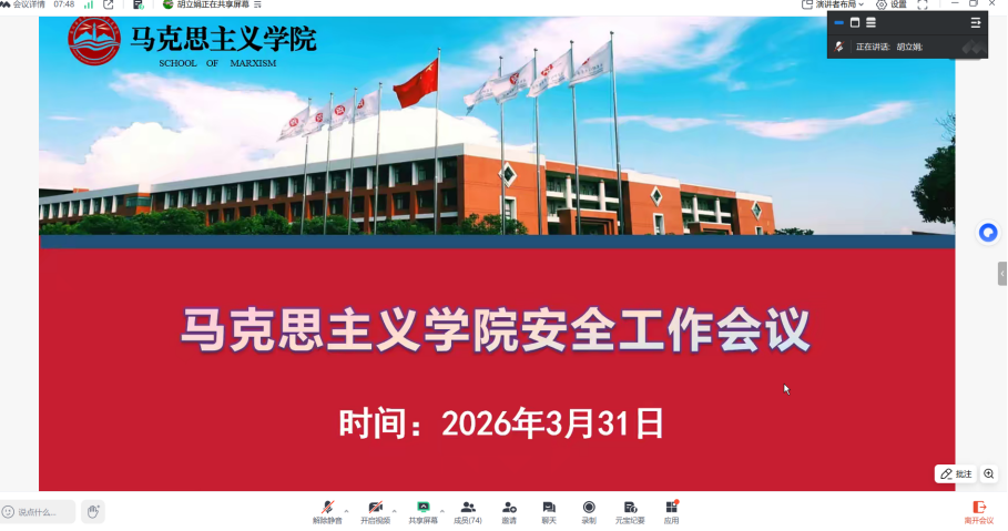 2026年3月31日中午,马克思主义学院召开线上工作部署会议,传达学校相关精神,安排近期重点工作。会议由院长杨明主持,学院办公室主任李秀蔚、教学副院长胡立娟分别作具体部署。