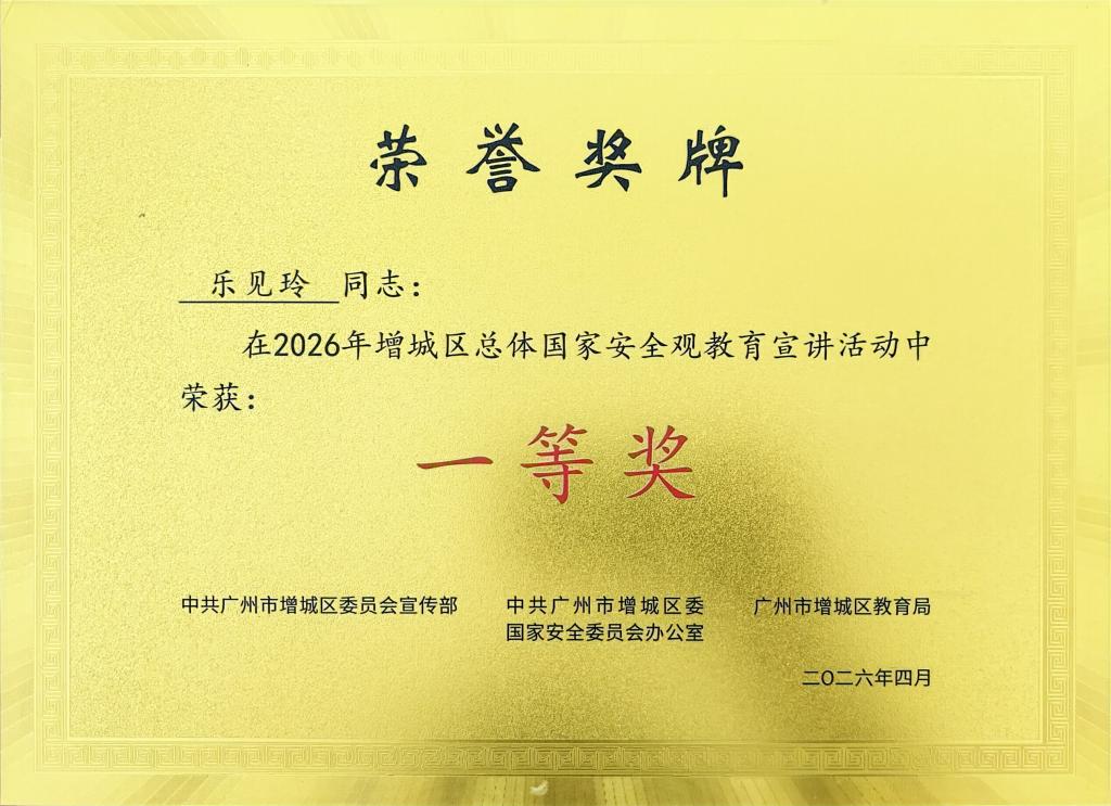 佳绩之外更有重任。因在比赛中的优异表现,乐见玲老师现场受聘为增城区总体国家安全观教育宣讲团成员。未来,她将带着这份荣誉走出赛场,深入机关、学校、社区等基层一线开展巡回宣讲,切实推动总体国家安全观“飞入寻常百姓家”。