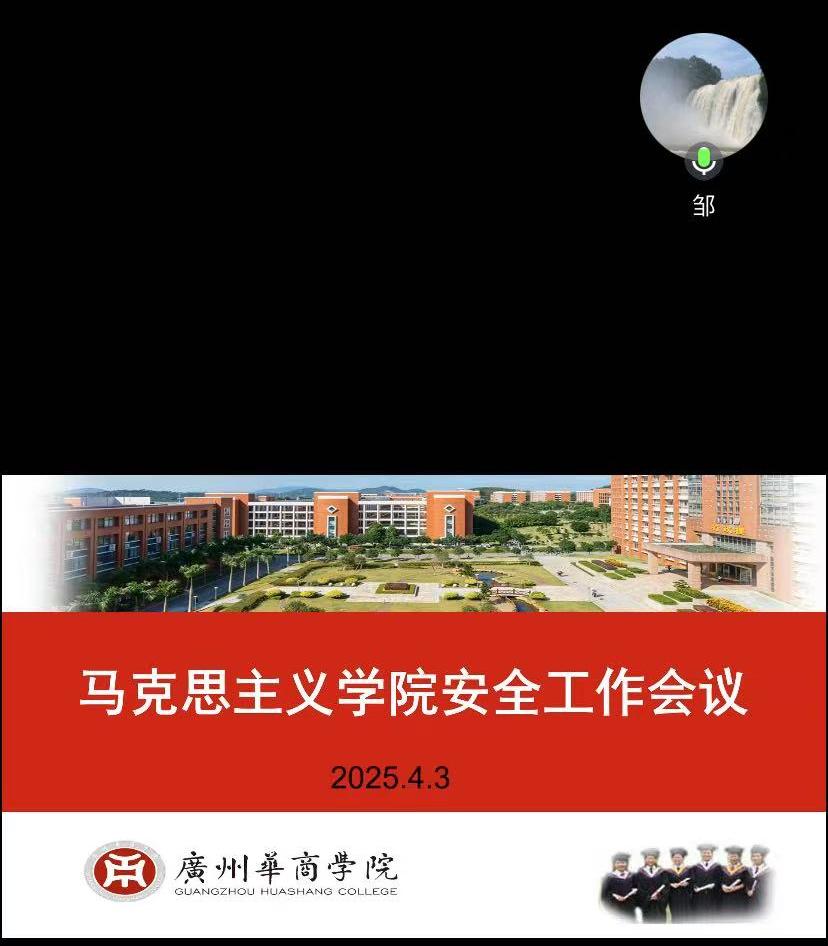 为深入贯彻广东省教育厅校园安全会议精神,扎实推进学院安全稳定工作,马克思主义学院于2025年4月3日通过腾讯会议平台召开学院安全稳定工作会议。学院领导与全体教师齐聚力量,共同推动学院安全稳定工作落细落实。