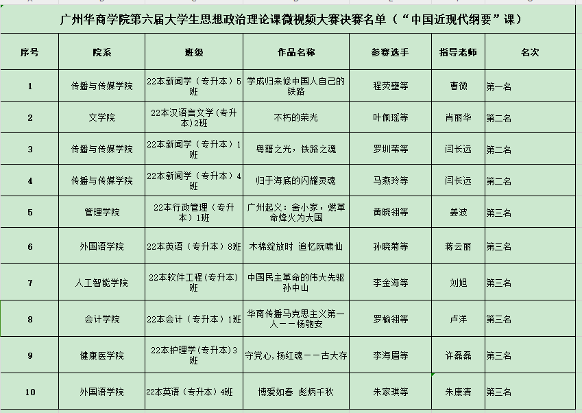 本次比赛自10月中旬开始启动,比赛覆盖2022级专升本全体学生(近4000人)。经过初赛和复赛两个遴选环节,共有10个作品进入决赛。这10个作品展现了中国近现代具有影响力的粤籍名人、英雄、先烈和模范人物故事,体现了广州华商学院学生崇敬先烈,爱党爱国爱乡的情怀,表达了青年学生继承先烈遗志,对实现中华民族伟大复兴的信心和决心。