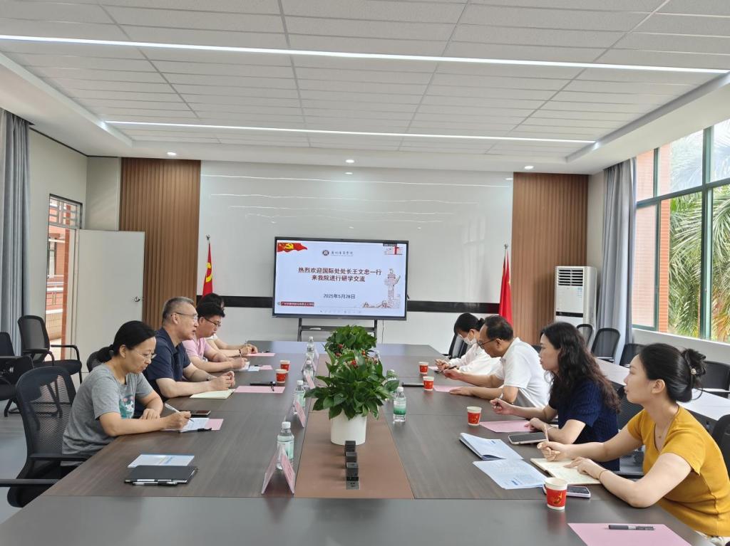 2025年5月28日,国际交流与合作处处长王文忠率国际职业教育发展中心团队到马克思主义学院开展交流座谈。会议由马克思主义学院院长杨明主持,双方围绕新时代背景下思政课程的实践教学创新展开深入探讨,共谋融合发展新路径。