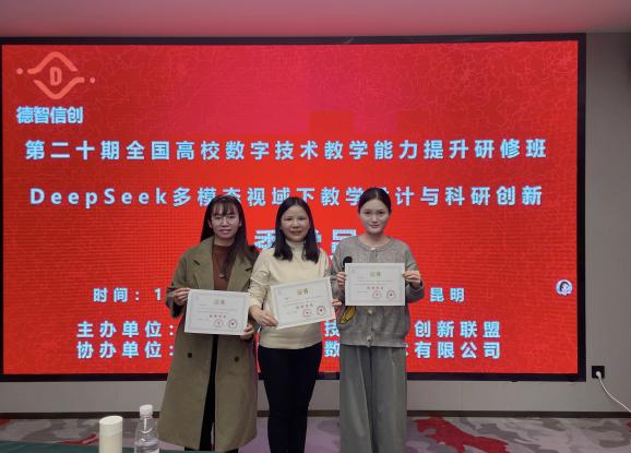 参训教师一致认为,此次培训是一次“技术赋能教育”的深度体验。凭借在培训中出色的表现,三位教师荣获“优秀学员”证书。她们表示,会将所学知识应用于今后的教学与科研中,积极运用DeepSeek等智能工具,让抽象的马克思主义理论“活”起来、“动”起来,不断增强思政教育的时代感与吸引力,为培养担当民族复兴大任的时代新人注入创新动能。